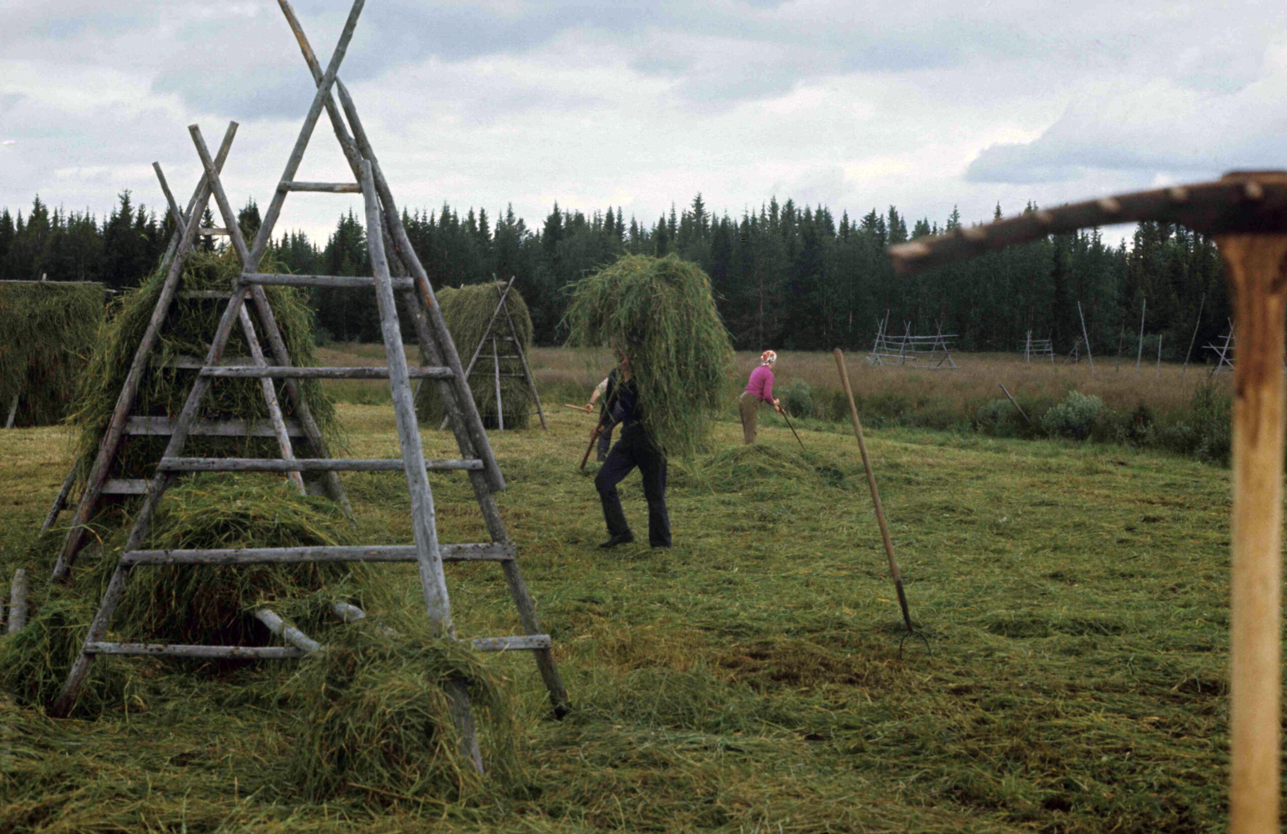 På denna bild ser du att åtminstone delar av den utdikade mossen gav en värdefull höskörd. Höskörd från myran var så sent som 50-talet, den del som gav den största volymen.