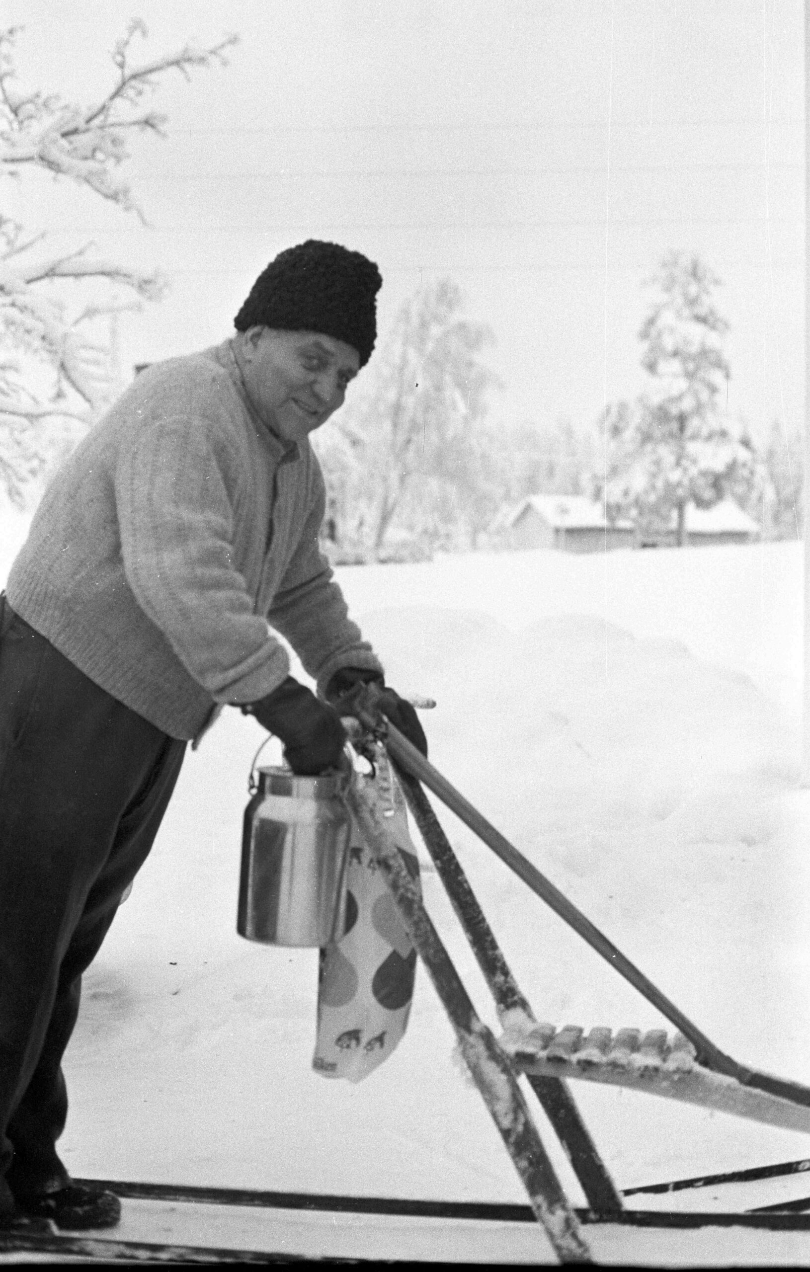 Bussen var även en transportör för de mjölk som vi sålde via mejeriet i Vilhelmina. På morgonen gällde det alltså att ha fyllt ev. mjölkkrukor och transporterat dom med den tunga kärran ner till vägen där byn hade en mjölkpall. Vi var två gårdar i byn som regelbundet skickade mjölk till mejeriet. I retur kunde vi beställa, dvs köpa, skummjölk till grisen och/eller kalvarna och köpa ost eller mesost till oss själva.