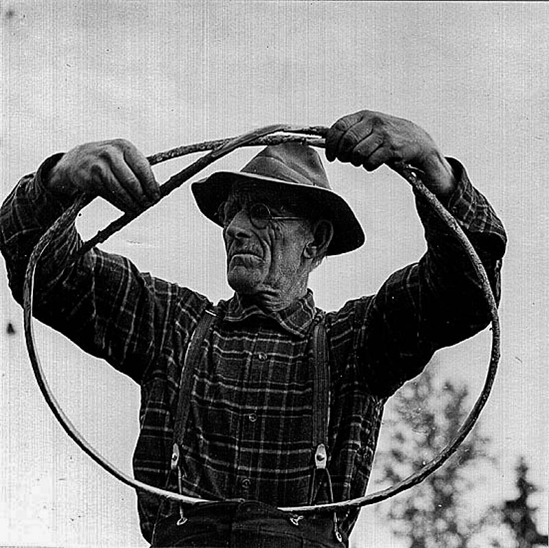 Det var ett väldigt dike av imponerade dimensioner han höll på med. 4,25 meter i “dan” och 1,80 till 2 meter djupt. En liten försmak om dikets storlek kan man få av bilden, där ‘n Per-Johan brottas med dyklimparna. Han dikar efter en gammal men effektiv metod. Först gör han en damm ovanför där han börjar dikningen. Sedan medan vattnet rinner till dammen spadar han loss myrklimparna ända fram. När det samlats tillräckligt med vatten släpper han opp sin provisoriska damm och myrklimparna simmar iväg längs diket för att till sist plumsa ner i Bäskån.. Dikningsarbetet underlättas avsevärt på det sättet i förhållande till att langa oppå dikeskanten. Stenarna, som finns, langas givetvis opp, och blir de för stora ser jag en stubbrytare, som säkert orkar med åtskilliga kilogram.